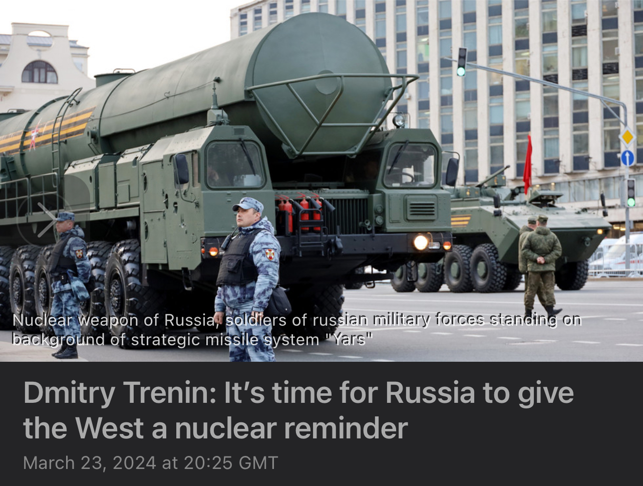 I left out some details. In the heat of it all we may see a nuke sink our old Eisenhower Aircraft Carrier that’s about to be decommissioned anyway, which will be blamed on Putin. We may see Hezbollah & Syria get attacked. We may see Iran get nuked. Maybe we nuke North Korea for an “October Surprise” after they get blamed for nuking South Korea. Maybe Israel nukes Russia for some reason. I mean… if we’re gonna put the leash on Israel anyway and leave them in the doghouse for timeout, we might as well have them instigating a whole bunch more really fucked up shit that the US is too chicken shit to do directly without some half-assed implausible deniability cover story.